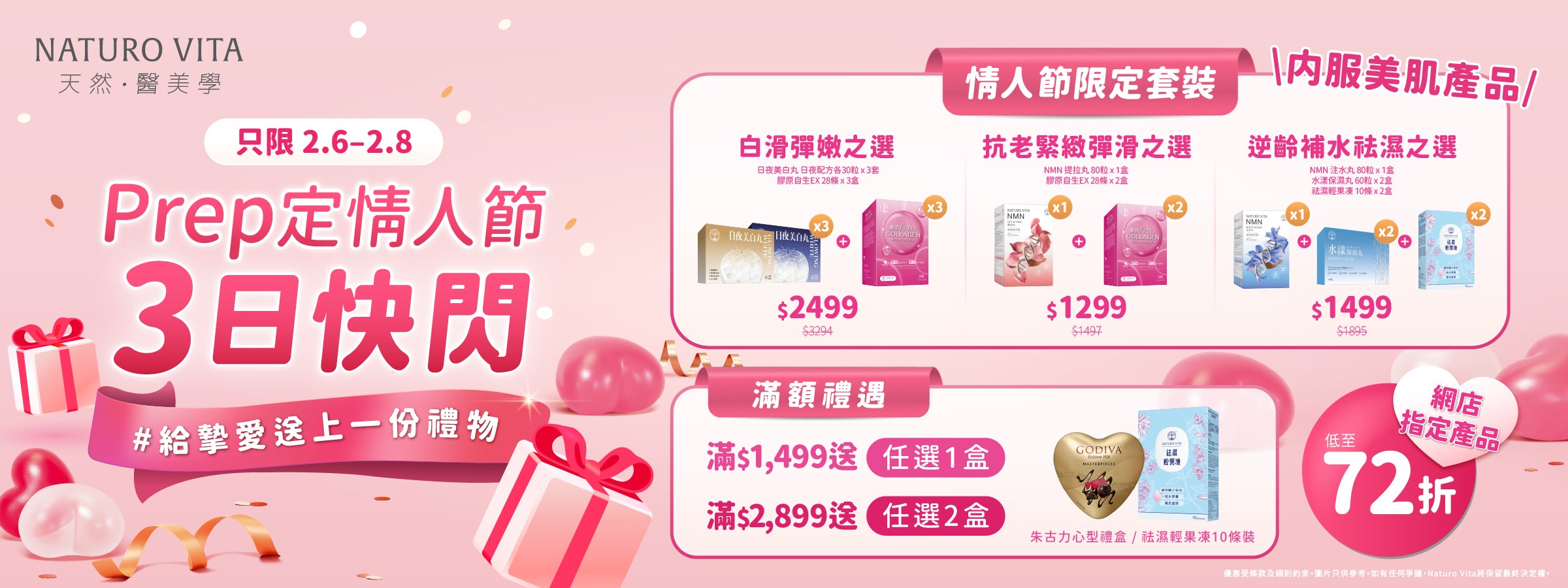 - 本優惠僅適用於Naturo Vita官網所顯示之「Prep定情人節快閃優惠」產品及套裝。